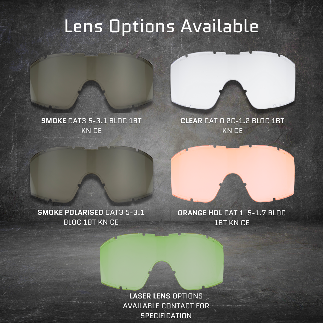 Featuring our intuitive interchangeable lens system, Hawkfire lenses can be quickly and securely swapped to adapt to rapidly changing light levels and mission requirements. Every lens incorporates Bloc Tactical’s advanced anti-fog and anti-scratch coatings, delivering crystal-clear vision and enhanced durability no matter the conditions. Whether you're navigating through dense woodland or harsh Arctic terrain, the Hawkfire helps you maintain focus and precision.