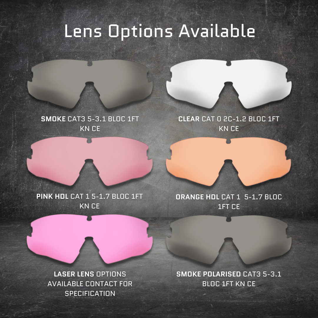 Utilising our interchangeable lens lock system, Lynx lenses can be changed easily to suit the light conditions. Bloc Tactical Lynx lenses take advantage of our advanced long lasting anti-fog and anti-scratch technology baked in that we apply to all our ballistic eyewear, helping you to stay on target.